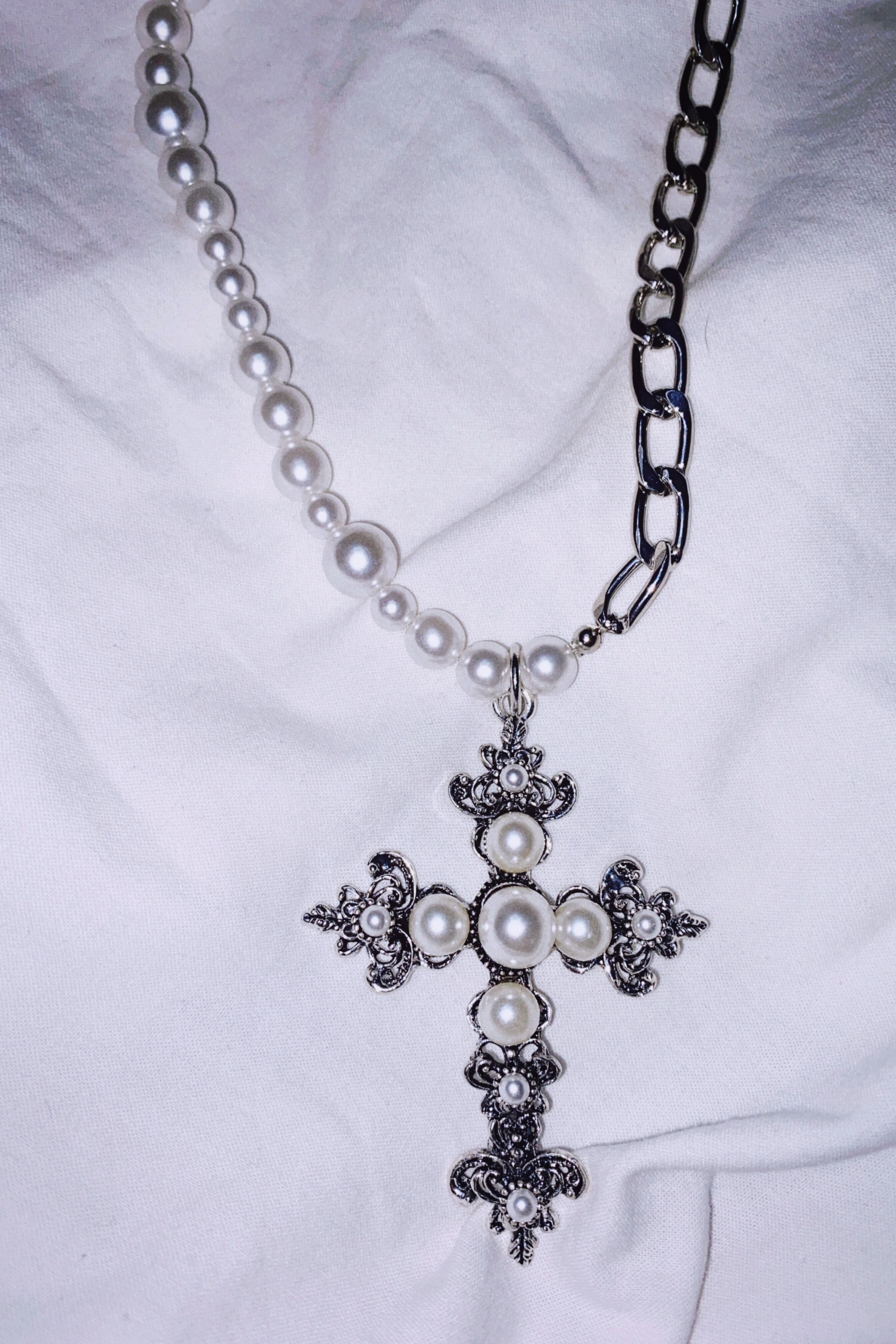 チェーンとパールビーズのネックレスになります。